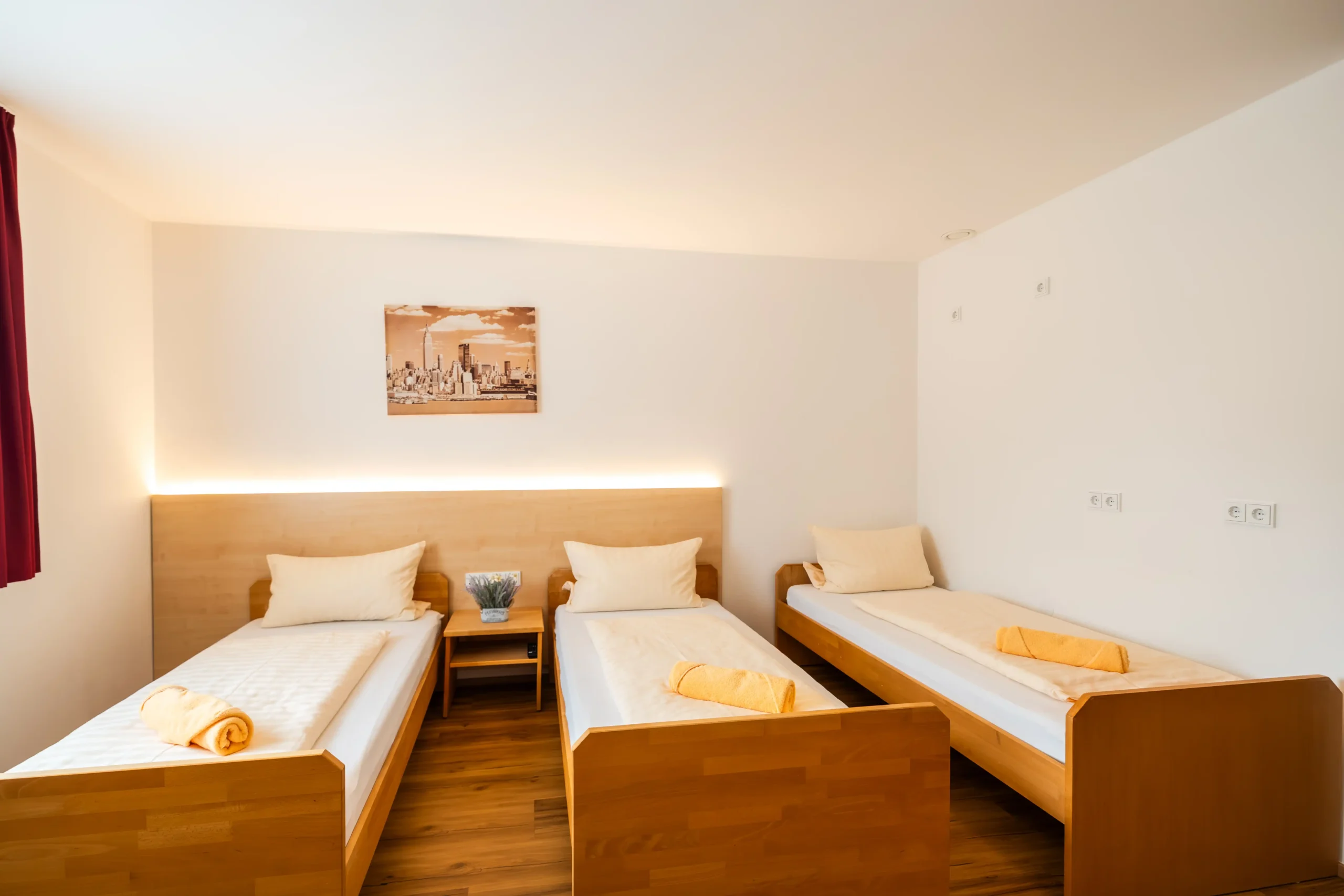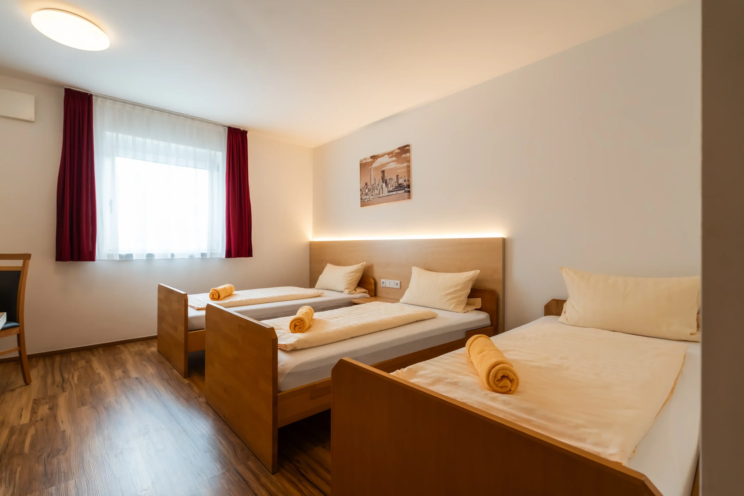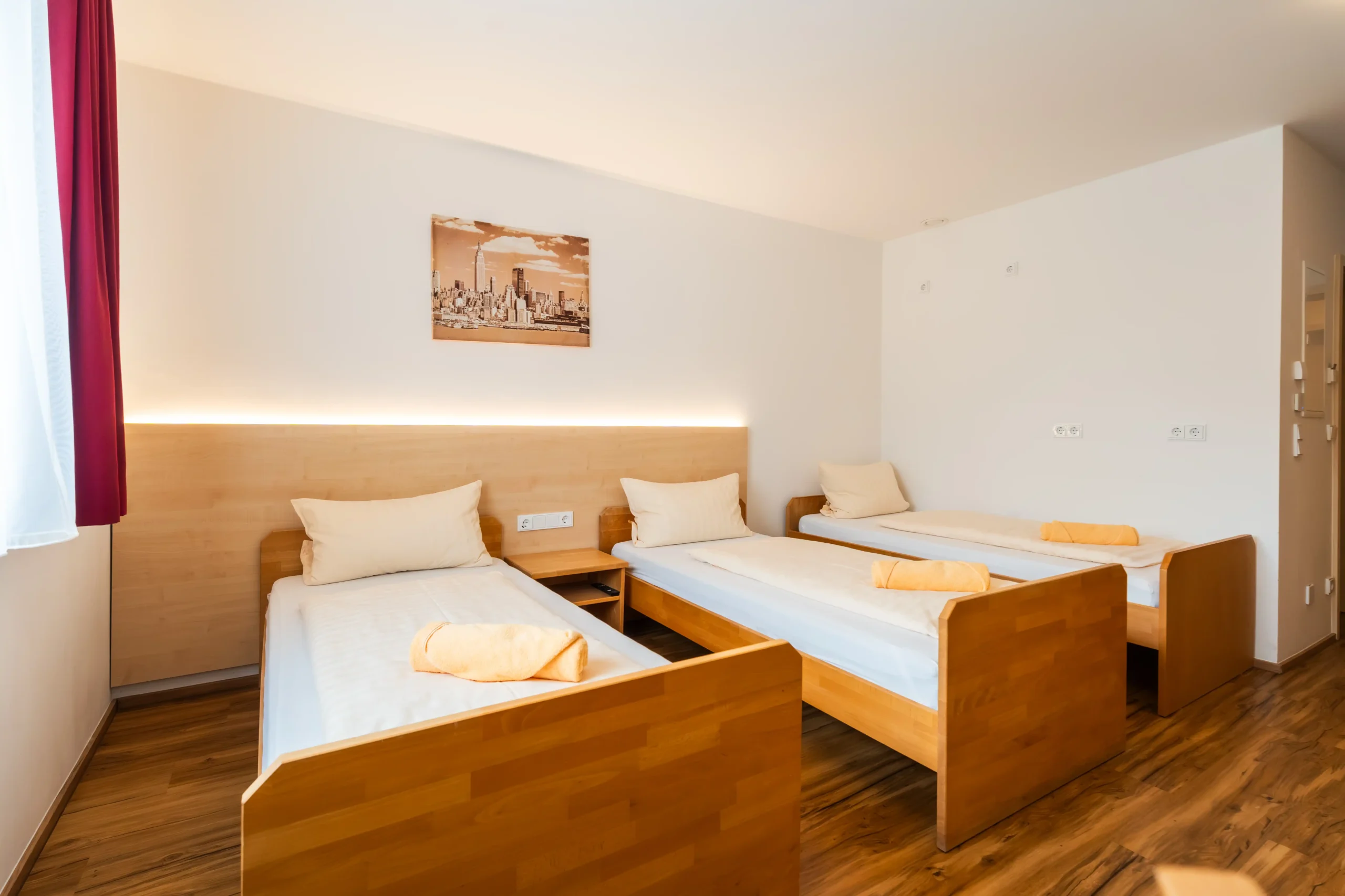 Unsere 3-Bett-Zimmer bieten ausreichend Platz für kleine Familien oder Gruppen. Praktisch geschnitten und komfortabel ausgestattet.