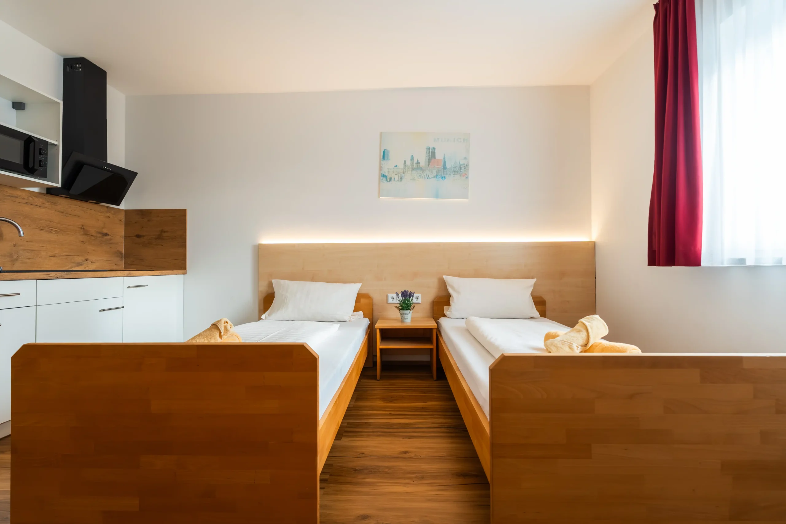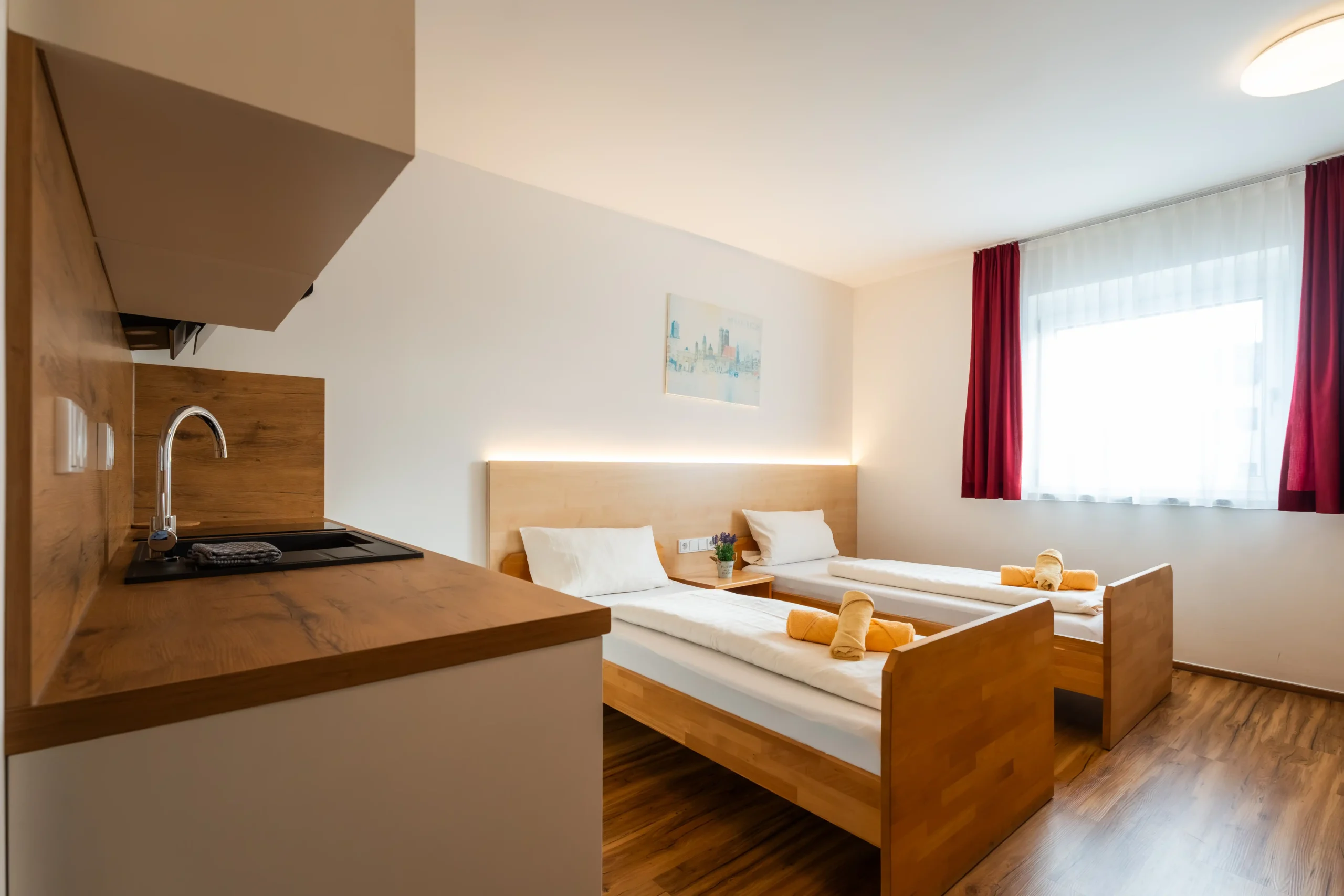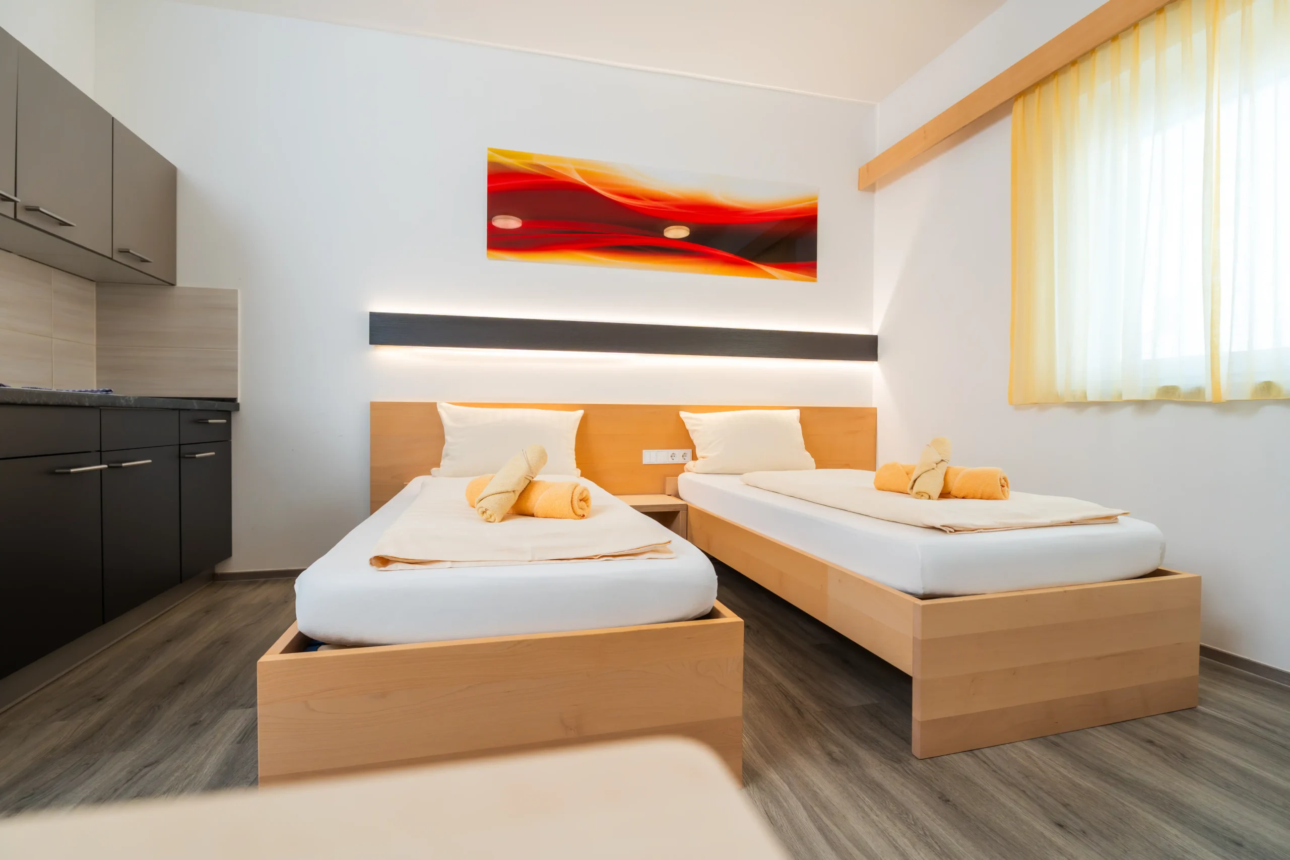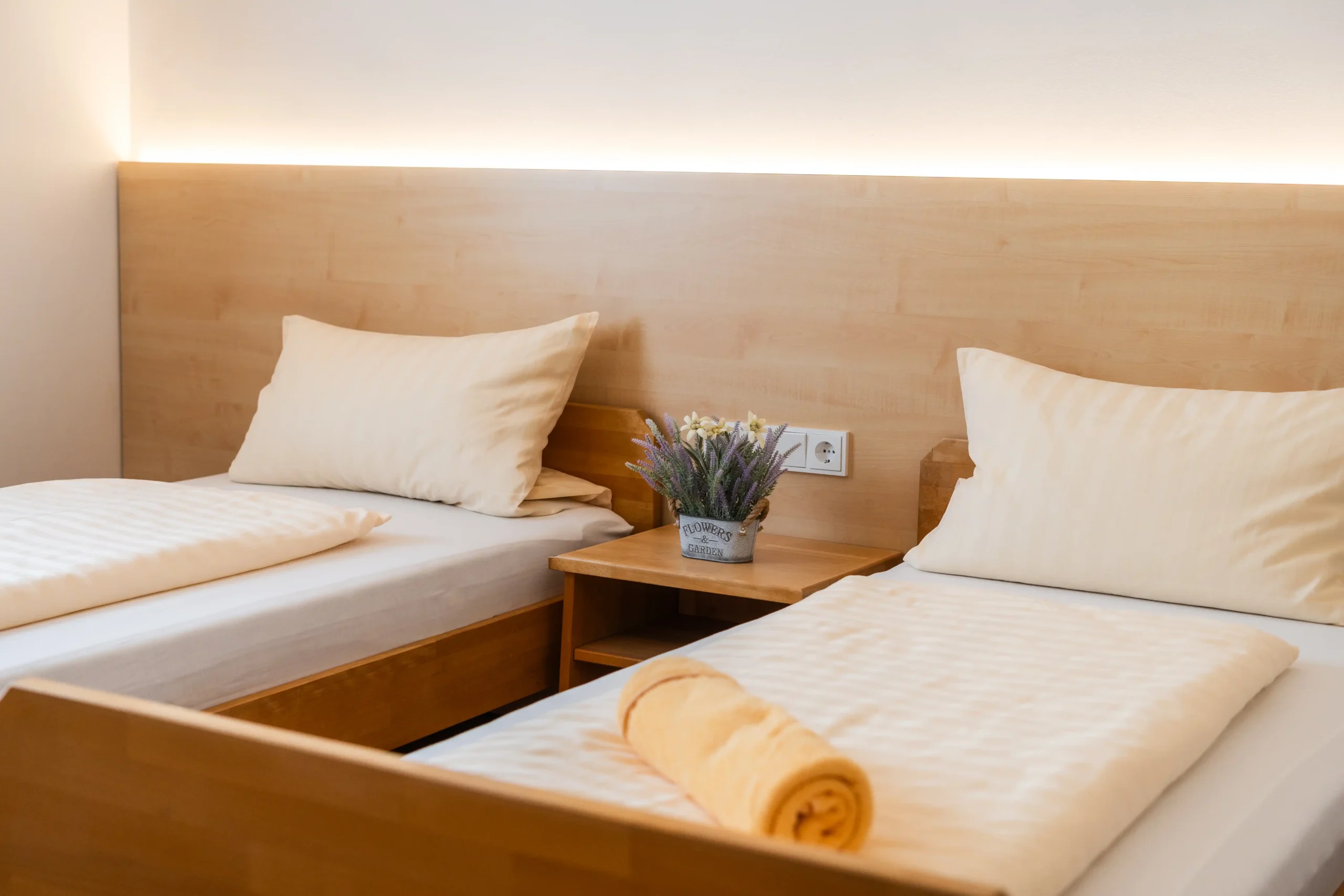 Gemütliche 2-Bett-Zimmer für Paare oder zwei gemeinsam reisende Personen. Helle Räume, angenehme Atmosphäre und ausreichend Platz für einen entspannten Aufenthalt.